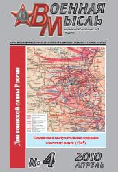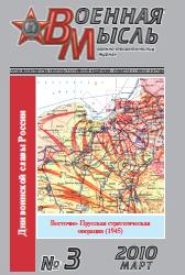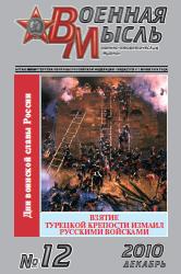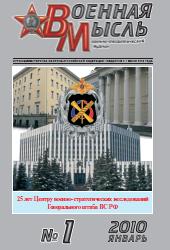 ![]() «Военная мысль» – старейшее и основное военно-теоретическое издание Министерства обороны Российской Федерации. Свою историю оно ведет с 1858 г., когда по инициативе профессора Императорской военной академии Д.А. Милютина был основан журнал «Военный сборник». |