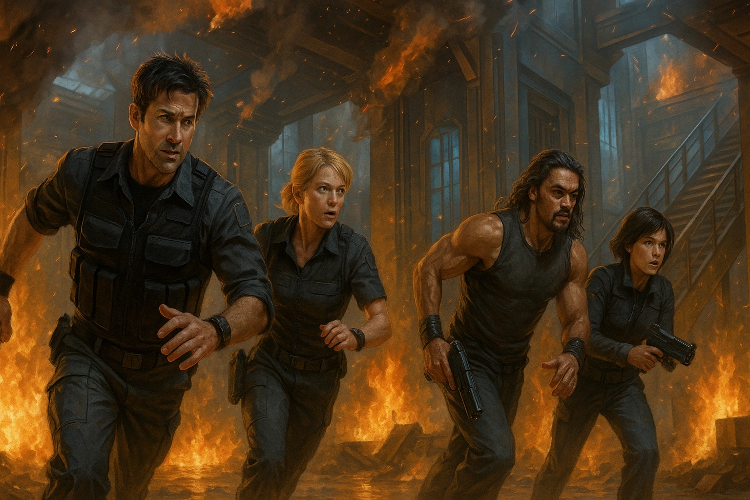 обвалюються галереї, ангар заповнюється димом;