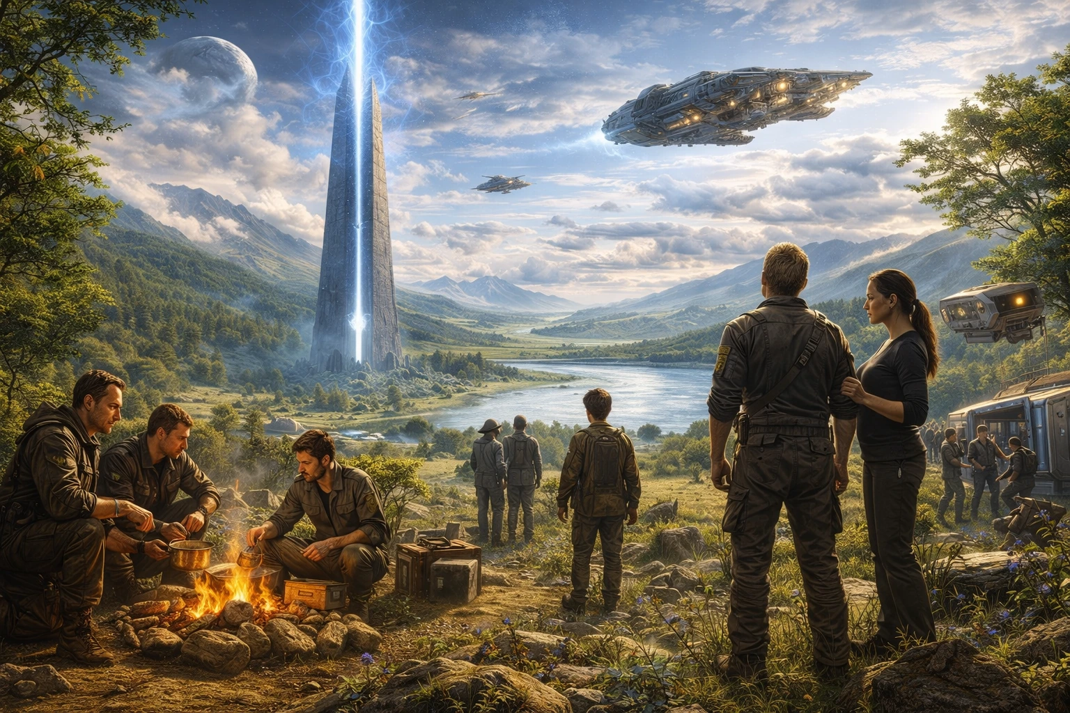 І серія не підморгує, не глузує й не моралізує. Вона просто ставить людей у ситуацію, де обидві інтерпретації психологічно вигідні, бо обидві дають те, що на Destiny дефіцитніше за воду: сенс. Планета як терапія: табір, рутина і майже забута нормальністьПоки Destiny “обертається” навколо зорі поза досяжністю шатлів, команда облаштовує тимчасовий табір на планеті. (Вікіпедія) І це, мабуть, найцікавіший соціальний експеримент сезону: на кораблі будь-яка дрібниця швидко стає політикою. На планеті — вперше за довгий час — є простір, повітря, ґрунт, їжа, дні, схожі один на інший. Люди починають відновлювати дуже базові речі: розмови без істерики, роботу без крику, сон без постійної тривоги. Цей “місячний стрибок” також використаний як м’який спосіб показати: після перевороту напруга між військовими та цивільними трохи спадає. Вони не стали друзями, але втома й рутина інколи лікують краще, ніж будь-який наказ. І тут серія дуже вдало підкладає символи “життя”: збір фруктів, вода, рослини з потенційними лікувальними властивостями, ремонт другого шатла (того самого, що був пошкоджений раніше). (Вікіпедія) Це все звучить буденно, але після перших 12 серій SGU буденність сприймається майже як диво. Обеліск: предмет віри для прагматиківЗвичайно, SGU не був би собою, якби дав просто “гарну відпустку”. Справжній гачок «Віри» — гігантський штучний обеліск, який Скотт помічає під час обльоту шатлом. (Вікіпедія) Він настільки монументальний, що в голові одразу з’являється думка: це не “пам’ятник”, це заява. Хтось хотів, щоб його бачили. Обеліск працює на двох рівнях: