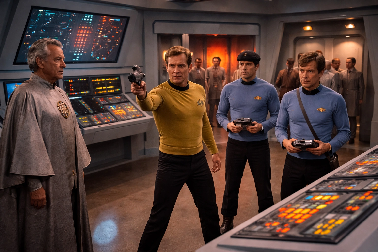 Ця структура змушує глядача відчувати клаустрофобію, хоча дія відбувається на планеті з містами й простором. Клітка тут — не стіни, а протокол. Тема, що читається сьогодні: дистанційність і «безконтактна» смертьОкрема сила серії в тому, що вона дуже добре передбачає моральні проблеми дистанційної війни. Тут не йдеться буквально про сучасні технології, але ідея схожа: коли той, хто «запускає процес», не бачить крові, а жертви перетворюються на цифри — з’являється небезпека, що рішення про життя і смерть стане адміністративною операцією. Серія показує радикальний варіант цього: ви зберегли міста, але зробили смерть частиною календаря. Це не просто критика війни — це критика дегуманізації через абстракцію. Кульмінація: зламати “цивілізовану” війну, повернувши їй реальністьКірк у фінальній частині робить те, що виглядає ризиковано, навіть агресивно, але логічно в рамках серії: він намагається змусити Еміняр та Вендикар знову відчути реальну ціну війни. Бо тільки так з’явиться стимул зупинитися. Це морально непроста ідея, і серія не ідеалізує її як «красиве рішення». Це скоріше жорстка правда: якщо ви зробили війну комфортною, вам потрібно повернути їй болючість — або ви ніколи не вийдете з циклу. У цьому місці Star Trek проявляє себе як доросла фантастика: він не пропонує чарівної формули миру. Він каже: мир потребує не лише раціональності, а й здатності пережити шок, який змусить змінити систему. Стиль і естетика: 60-ті, але з дуже сучасним ядромТак, в епізоді відчувається час: декорації, манера гри, ритм діалогів. Але головна ідея настільки сильна, що «старість» стає рамкою, а не недоліком. Навпаки: те, що у 1967 році серіал на прайм-таймі показав цивілізацію, яка веде «чисту війну» через комп’ютерні симуляції, — це демонстрація того, наскільки сміливими були автори в темах. Це не просто «космічні пригоди». Це етична лабораторія. Чому «Смак Армагеддона» — важливий епізод