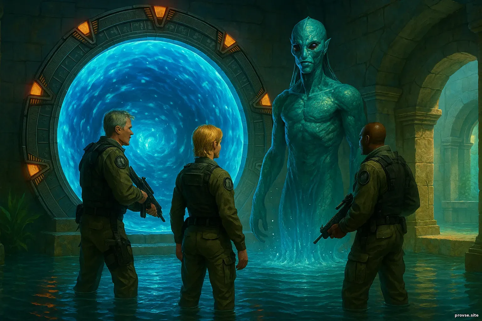 Развёрнутый художественно-аналитический разбор серии «Огонь и вода» (Fire and Water) — сезон 1, серия 13 «Звёздные врата: SG-1». «Огонь и вода» — скорбь, память и тайны подводного мираПРОЛОГ: смерть как иллюзияSG-1 уже не раз сталкивались с угрозой смерти, но в «Огонь и вода» сценаристы делают акцент не на сражении, а на переживании утраты. СЮЖЕТ: кто погиб на самом деле?SG-1 возвращается на базу в шоке: они убеждены, что Дэниел Джексон погиб на другой планете, и устраивают ему поминальную службу. Каждый из членов команды вспоминает «момент его гибели» по-своему — но воспоминания странно совпадают, словно навязаны. На самом деле Дэниел жив, но удерживается существом по имени Нем — разумным представителем амфибийной расы, обитающей в океане планеты. Нем хочет получить от Дэниела знания о судьбе Омораки — другой личности, связанной с древней мифологией его народа. Дэниел понимает: его команда обманута, её память изменена. Его задача — выжить и донести до Нема, что он не враг, а исследователь. Финал: SG-1 возвращается и спасает Дэниела, а Нем, осознав, что люди ничего не знают об Омораке, отпускает его, но остаётся в своей скорби и одиночестве. ГЕРОИ: скорбь и стойкость
