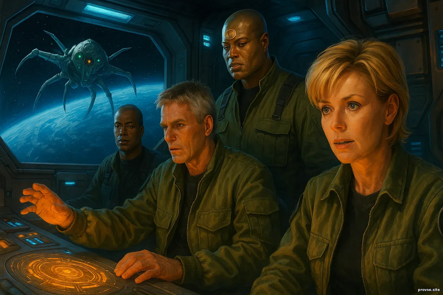 ТОН И СТИЛЬ: техно-триллер с нотами иронииАтмосфера сочетает тревожный саспенс и фирменный юмор сериала. На борту корабля — почти хоррор о выживании, в лаборатории Асгардов — сухой научный триллер, а в штабе SGC — динамичный диспетчерский ритм. Эта многослойность придаёт серии особый драйв. ВИЗУАЛЬНОСТЬ: холодный металл и ледяная вода