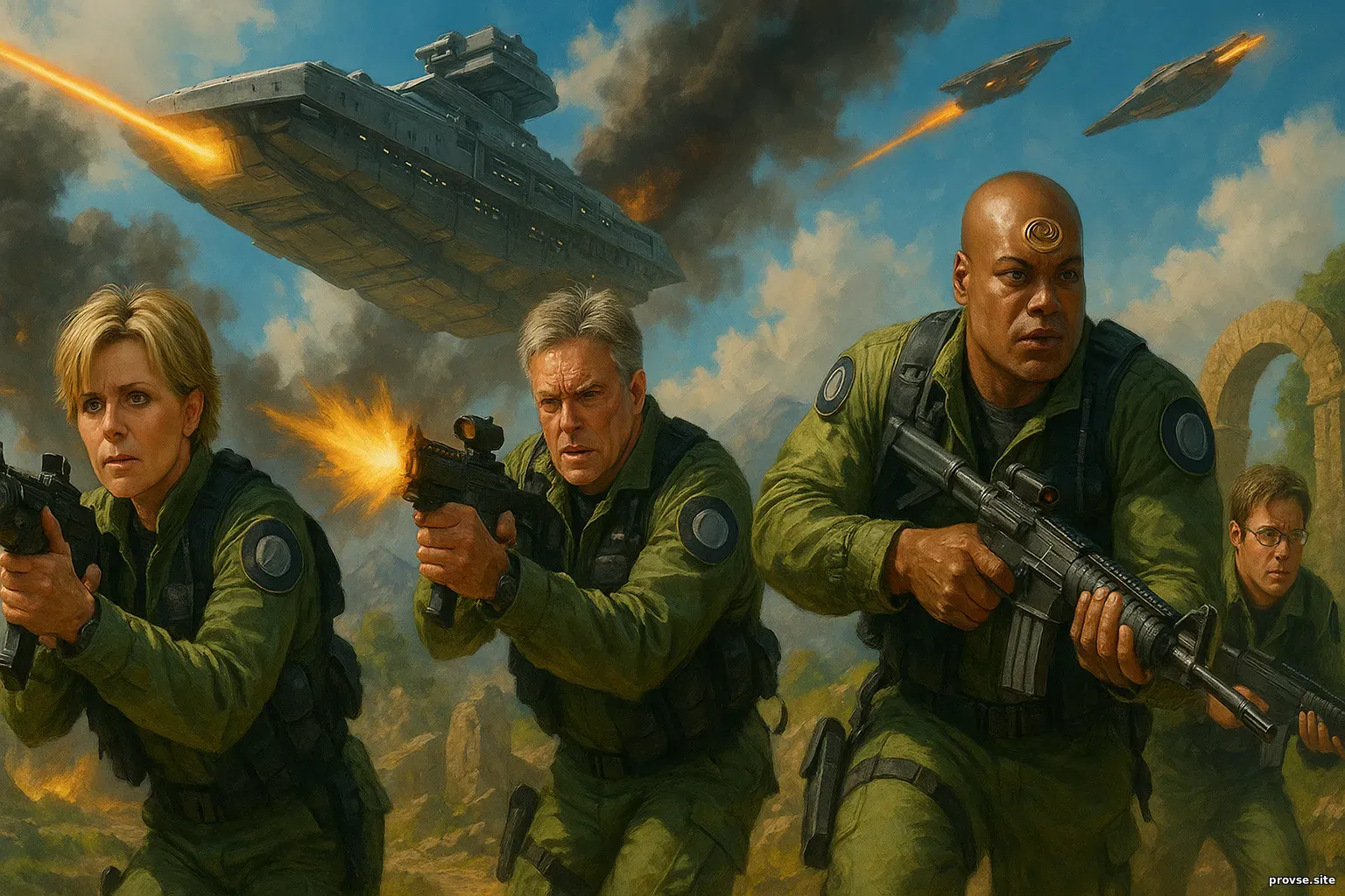 Простреленные небеса и золотые дроны, уничтожающие корабли Анубиса, — кульминация визуального искусства SG-1.