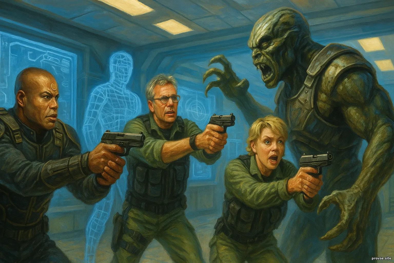 После трагедии «Иконы», где вера уничтожила цивилизацию, SG-1 сталкивается с другой формой реальности — искусственной, но не менее опасной.